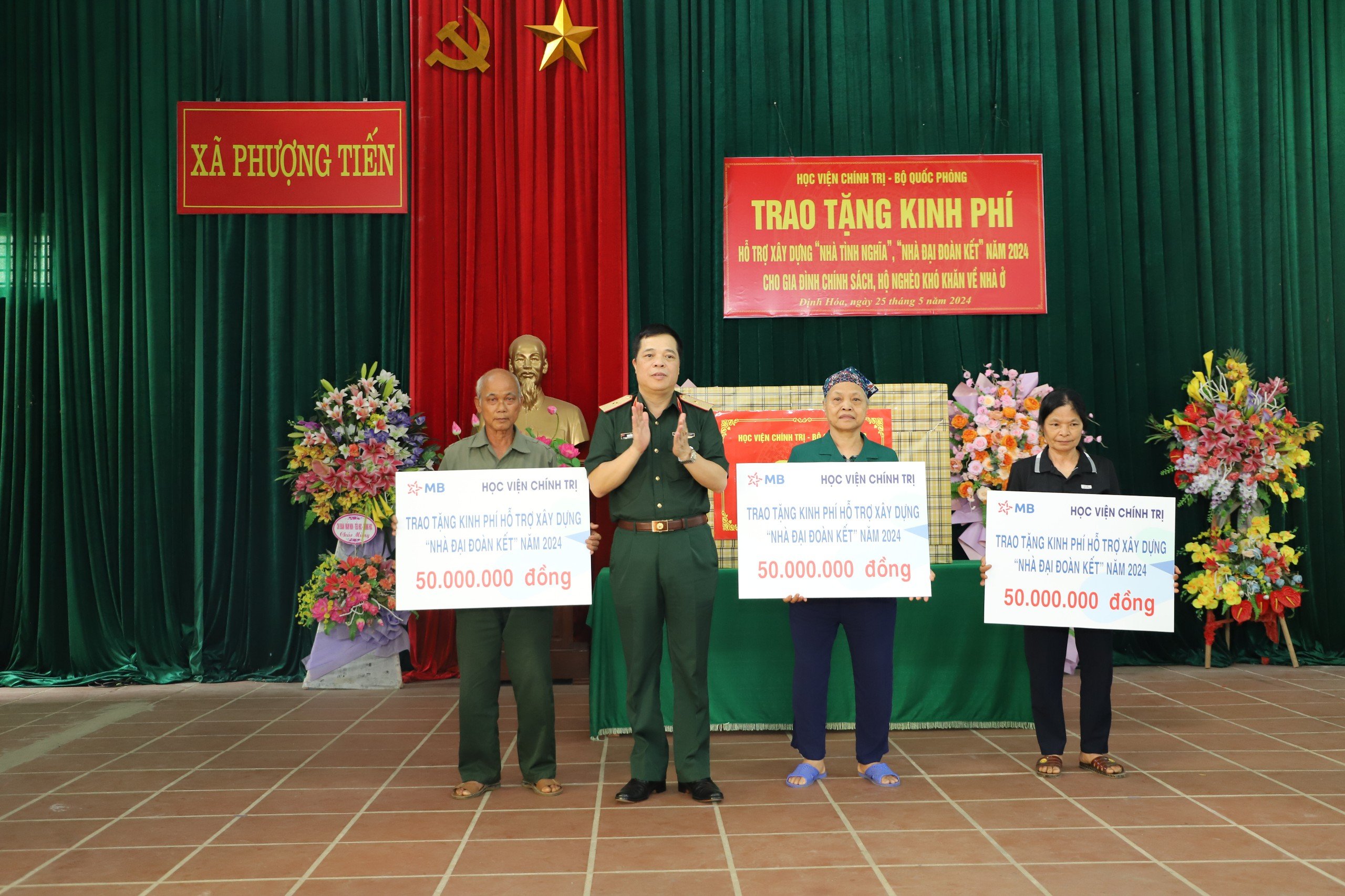 Học viện Chính trị - Bộ Quốc Phòng dâng hương và trao nhà Đại đoàn kết tại xã Phượng Tiến.